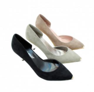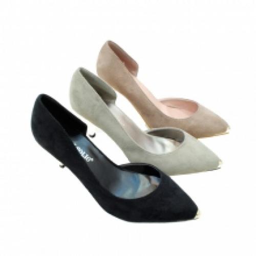 Paire d'escarpins orsay aspect nubuck très classe et casual avec talon aiguille et bout à métal argenté pour s'assortir à vos magnifiques robes ou tenue habillée. Modèle fabriqué en polyuréthane, vendu par lot de 12 paires au meilleur prix (7.50 € / Unité). Plusieurs coloris disponibles : blue, grey, khaki et black. Tailles assorties : 36-41. Pour plus d’informations, contactez notre service client au Tél : 0974771480 ou envoyez-nous un mail sur cette adresse : contact@ventegros.fr.