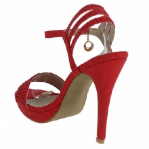 Luxe et glamour, profitez de ces escarpins rouges agrémentés de strass. Escarpins en polyuréthane, vendus par lot de 12 paires à prix bradé (9.50 € / Unité). Dotés d’un talon aiguille et d’une bride bouclée avec breloque fantaisie dorée. Pointures assorties : 36-41. Pour plus d’informations, contactez notre service client au Tél : 0974771480 ou envoyez-nous un mail sur cette adresse : contact@ventegros.fr.