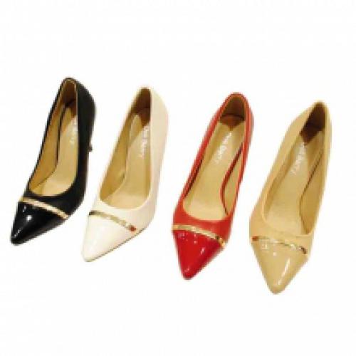 Jolis escarpins vernis pour femme façonnés en similicuir, livrés par lot de 12 paires à prix abordable (9.45 € / Unité). Escarpins à talon aiguille et bout pointu, ornés de métal doré dessus. Plusieurs couleurs au choix : noir, rouge, blanc, beige. Pointure : 36-41. Pour plus d’informations, contactez notre service client au Tél : 09 74 77 14 80 ou envoyez-nous un mail sur cette adresse : contact@ventegros.fr.
