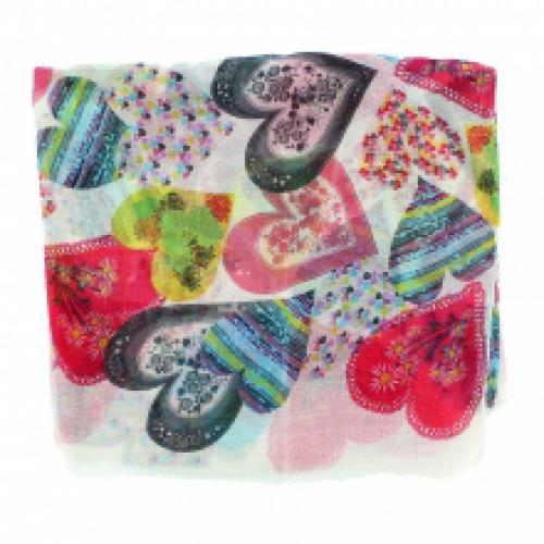 Ravissant foulard imprimé de coeurs fantaisie, convertible en plusieurs façons de porter. Matière : 100% viscose. Ventegros.fr vous livre le lot de 20 foulards à prix concurrentiel (2.43 € / Unité). Couleurs assorties. Taille : 80 x 180 cm. Pour plus d’informations, contactez notre service client au Tél : 09 74 77 14 80 ou envoyez-nous un mail sur cette adresse : contact@ventegros.fr.