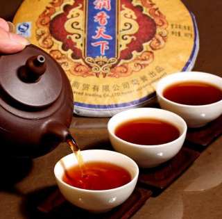 Galette de thé pu-erh cuit du Yunnan 357g cuvée spéciale Run Xian Tian Xia: Doux Parfum sur la Terre, année de récolte 2009, cueillettes supérieures, lieu de production: Yunnan, Xishuangbanna, Menghai, montagne Nan Nuo