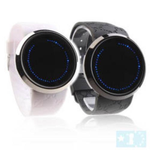 Montre a led haut de gamme a l'affichage circulaire de couleur bleu.