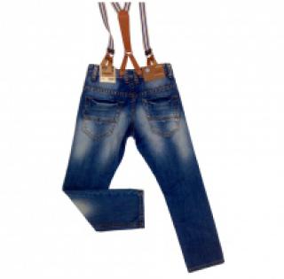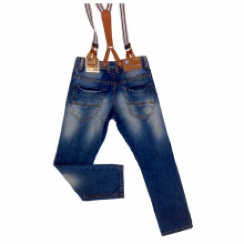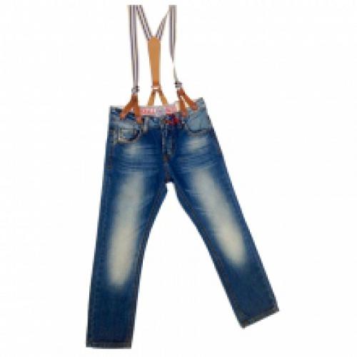 Jeans délavé garçon avec bretelles rayées