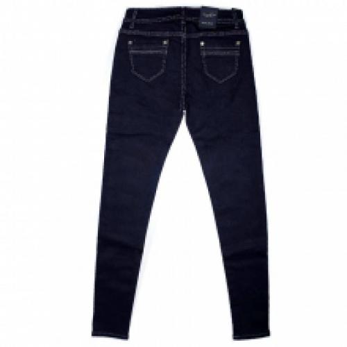 Jeans slim bleu foncé avec poches ornées de rivets argentés