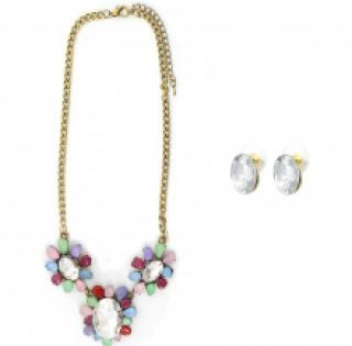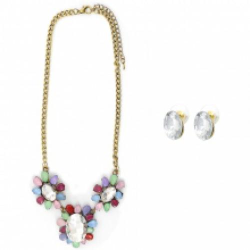 Magnifique parure ornée de pierres, vendue par lot de 12 à prix défiant toute concurrence sur ventegros.fr (3.38 € / Unité). Parure composée d’un collier en maille dorée avec pendentif fleurs en pierres et boucles d'oreilles rondes en pierres avec fermoir alpa. Couleurs assorties : noir, blanc, vert, rose, bleu, multi couleur. Taille : 42 cm. Pour plus d’informations, contactez notre service client au Tél : 09 74 77 14 80 ou envoyez-nous un mail sur cette adresse : contact@ventegros.fr.