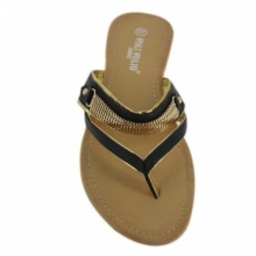 Lot de 12 paires de sandales noires en polyuréthane, vendu à un prix concurrentiel (5.50 € / Unité). Ornées de chaîne dorée avec liseré doré. Montées sur une semelle d’usure en gomme antidérapante. Pointures assorties : 36-41. Pour plus d’informations, contactez notre service client au Tél : 0974771480 ou envoyez-nous un mail sur cette adresse : contact@ventegros.fr.