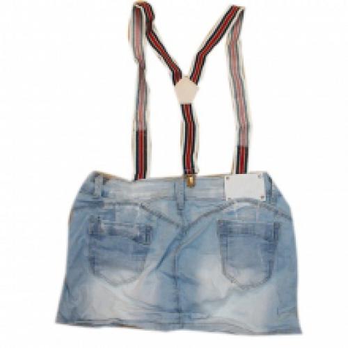 Ravissante jupe en jeans délavé avec bretelles amovibles, vendue par lot de 10 pièces à prix abordable (14.85 € / Unité). Majorité de fabrication en coton. Disponible en couleur unique. Tailles : 34, 36, 38, 40 et 42. Pour plus d’informations, contactez notre service client au Tél : 0974771480 ou envoyez-nous un mail sur cette adresse : contact@ventegros.fr.