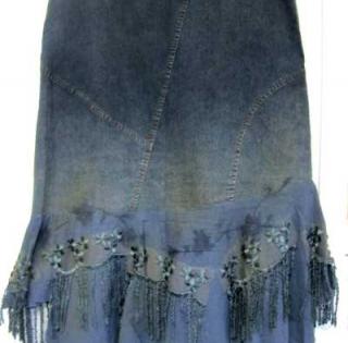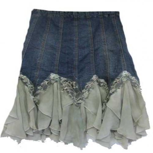 Jupe en jean avec petits volants en bas de jupes et broderie ornée de perles