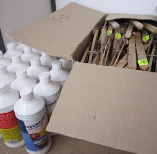 18 Nettoyants dalles ext. 1L, 9 Dégriseurs bois 1L, 9 Dégraissants universel 1L, 52 decos ski bois petits,