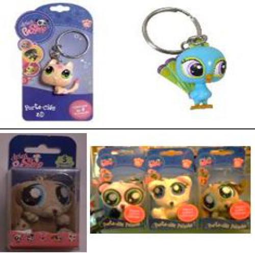 Porte-clé 3D - Littlest Pet Shop - Chat : 2couleurs ; Rose , Marron / Oiseau : Bleu . Porte clé sous blister Gencod : 3 760122 972766