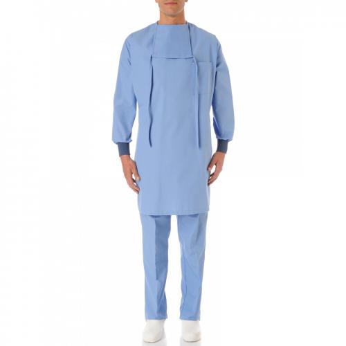 Cette blouse de chirurgie a 100% Coton résistants à très haute température en machine et stérilisable en autoclave.