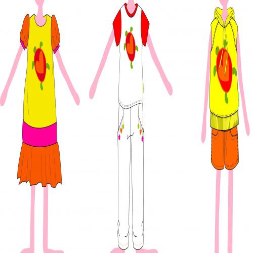 comprenant jpes, robes, pantalons, jeans, vestes, gilets, pulls, tee-shirts, pantacourts, etc...
