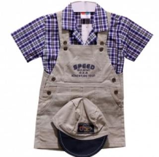Magnifique ensemble salopette et chemise avec casquette pour bébé garçon