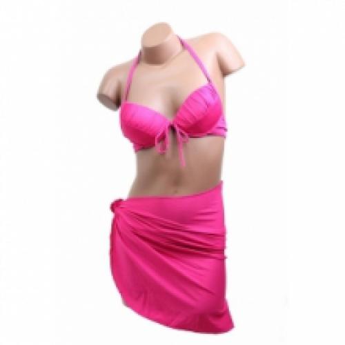 Maillot de bain trois pièces uni avec effet fronces, vendu par lot de 12 à petit prix (5.13 € / Unité). Maillot de bain pour femme composé d’un soutien-gorge à bonnet coque, d’une culotte avec fronces et d’une jupette à nouer sur le côté. Lot disponible en couleurs assorties. Tailles disponibles : S, M, L et XL. Pour plus d’informations, contactez notre service client au Tél : 0974771480 ou envoyez-nous un mail sur cette adresse : contact@ventegros.fr.