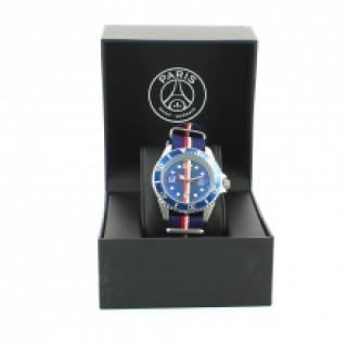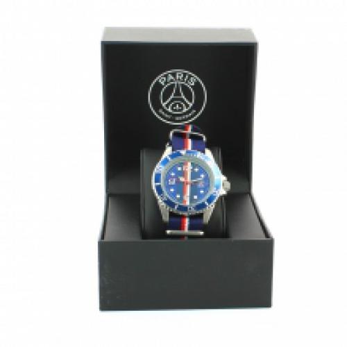 Montre-bracelet bleue Paris Saint-Germain avec bracelet tricolore en tissu