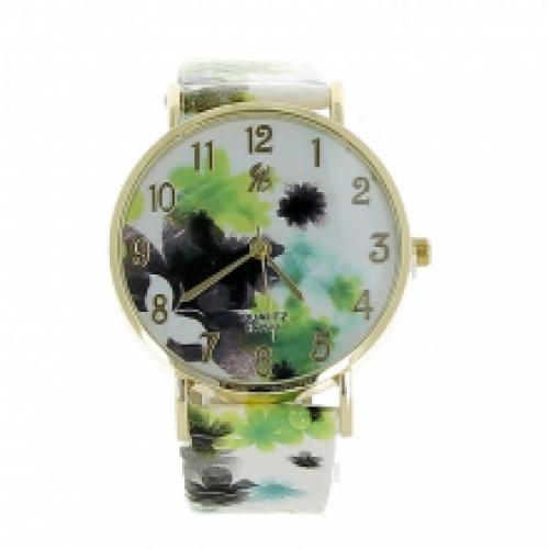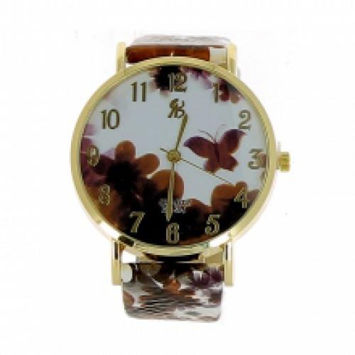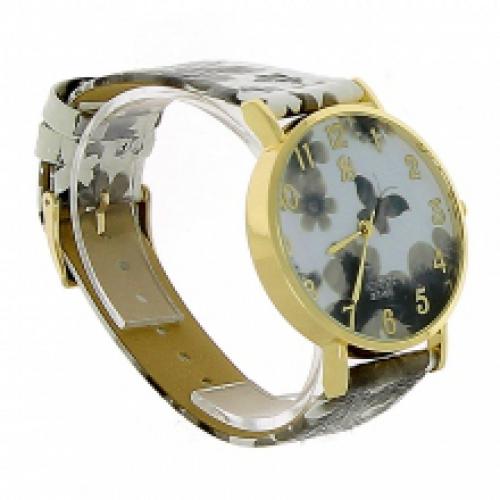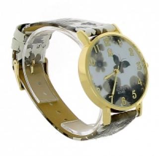 Montre-bracelet dorée imprimée fleuri