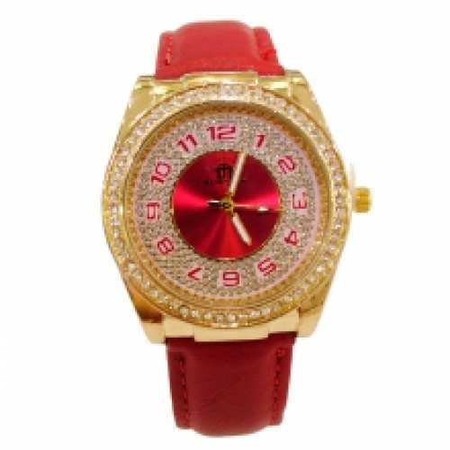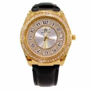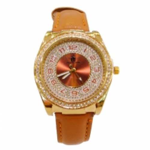 Montre-bracelet dorée pour femme agrémentée de strass, dotée d’un bracelet en similicuir, d'un affichage analogique et mouvement quartz. Modèle disponible en couleurs assorties et livré par lot de 5 pièces à prix défiant toute concurrence (3.50 € / Unité). Garantie 1 an. Pour plus d’informations, contactez notre service client au Tél : 01 43 52 10 28 ou envoyez-nous un mail sur cette adresse : contact@ventegros.fr.