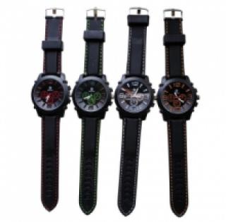 Déstockage des montres personnalisables avec affichage analogique et 3 chronographes. Vendues par lot de 5 à petit prix (3.50 € / Unité). Montres équipées d’un bracelet façonné en caoutchouc avec surpiqûre contrastante, d’un cadran en acier et 3 boutons dont un pour le réglage et les deux autres associés aux chronos. Disponible en couleurs assorties et en taille unique. Minimum 500 pièces, garantie 1 an, livraison dans 2 mois. Pour plus d’information, contactez notre service client au Tél : 0974771480 ou envoyez-nous un mail sur cette adresse : contact@ventegros.fr.