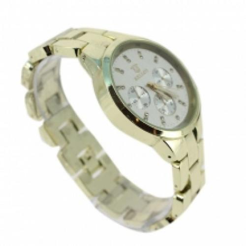 Montre métal doré personnalisable équipée d’un affichage analogique à aiguille, d’un index en strass, de trois compteurs et de trois boutons de réglage sur le côté ; vendue par lot de 6 pièces à un prix imbattable (7.00 € / Unité). Doté d’un bracelet en métal ajustable à votre poignet. Disponible en couleurs assorties. Taille : 4 cm. Minimum 500 pièces, garantie 1 an et livraison dans 2 mois. Pour plus d’informations, contactez notre service client au Tél : 0974771480 ou envoyez-nous un mail sur cette adresse : contact@ventegros.fr.