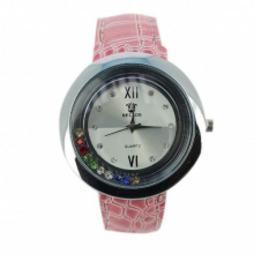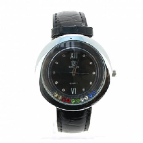 Montre ornée de strass avec bracelet croco