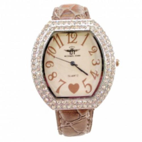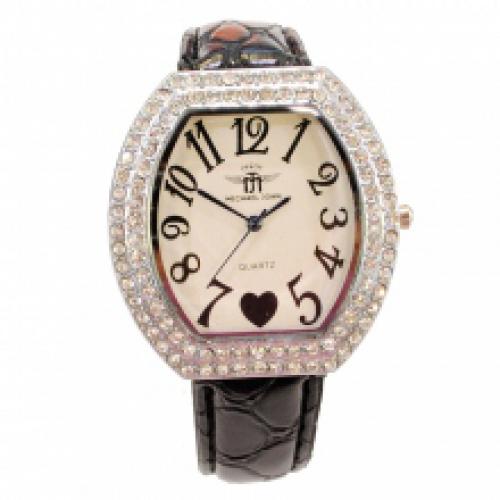 Montre pour femme à cadran ovale orné de strass et bracelet classique