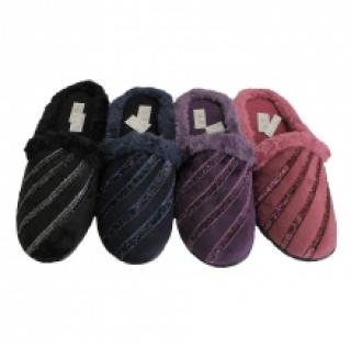 Lot de 50 paires de pantoufles avec rayures pailletées et bordées de fourrures, offertent à prix défiant toute concurrence sur ventegros.fr (2.02 € / Unité). Le confort et la douceur de la matière ne nous font pas sentir la moindre froidure. 4 couleurs assorties : noirx25, violet foncéx5, bleu foncéx10, magentax10. Pointures : 36-41. Pour plus d’informations, contactez notre service client au Tél : 09 74 77 14 80 ou envoyez-nous un mail sur cette adresse : contact@ventegros.fr.
