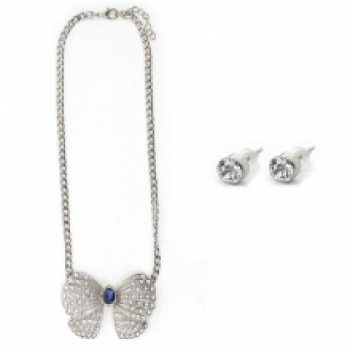 Découvrez des jolies parures à prix très doux sur ventegros.fr. Parure munie d'un collier en maille dorée avec pendentif papillon à strass et boucles d'oreilles en cristaux avec fermoir puce. Couleurs assorties : doré, argenté. Taille : 42 cm. Le lot de 12 est vendu pas cher (2.70 € / Unité). Pour plus d’informations, contactez notre service client au Tél : 09 74 77 14 80 ou envoyez-nous un mail sur cette adresse : contact@ventegros.fr.