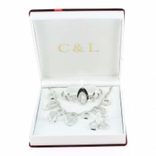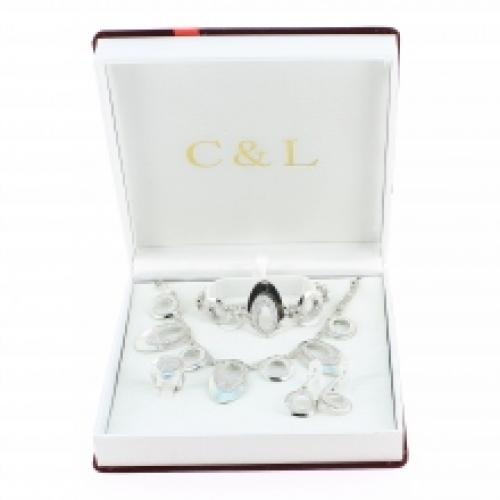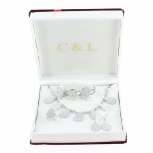 Lot de 3 parures composées d’un collier plastron en chaîne avec motif fantaisie pailleté, d’un bracelet assorti, des boucles d’oreilles pendantes et d’une belle bague. Le lot est livré à petit prix (6.75 € / Unité). Parure fabriquée en métal. Disponible en couleurs assorties et en taille unique. Pour plus d’informations, contactez notre service client au Tél : 0974771480 ou envoyez-nous un mail sur cette adresse : contact @ventegros.Fr.