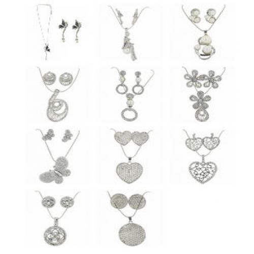 Sublime parure ornée de strass composée d'un collier avec pendentif fantaisie orné de strass, boucles d'oreilles assorties avec fermoir puce. Dotée d’une taille ajustable de 40 cm. Couleurs assorties. Ventegros.fr vous livre le lot de 20 à prix compétitif (1.62 € / Unité). Pour plus d’informations, contactez notre service client au Tél : 09 74 77 14 80 ou envoyez-nous un mail sur cette adresse : contact@ventegros.fr.