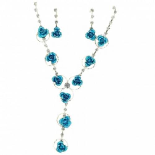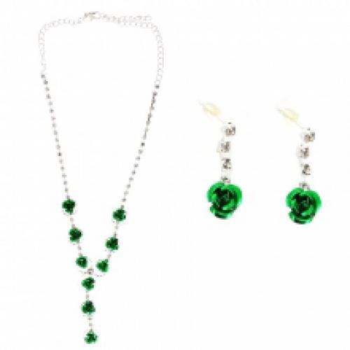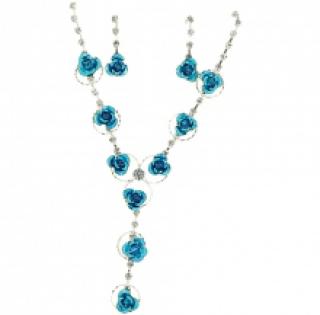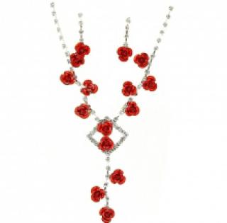 Parure ornée de strass avec pendentif roses