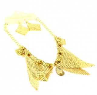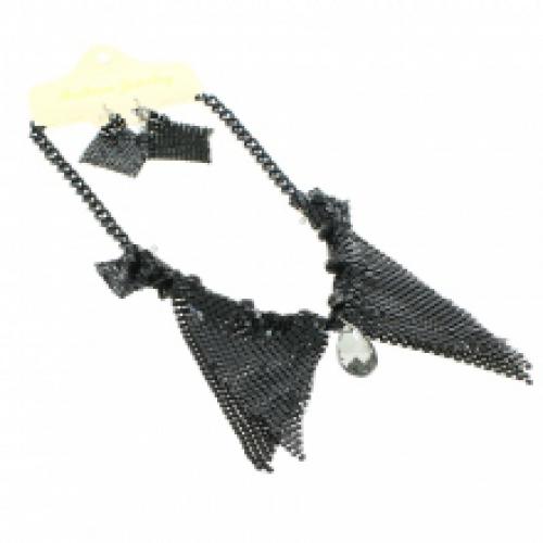 Parure tendance en cotte de mailles avec un cristal sur le pendentif