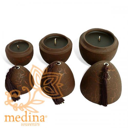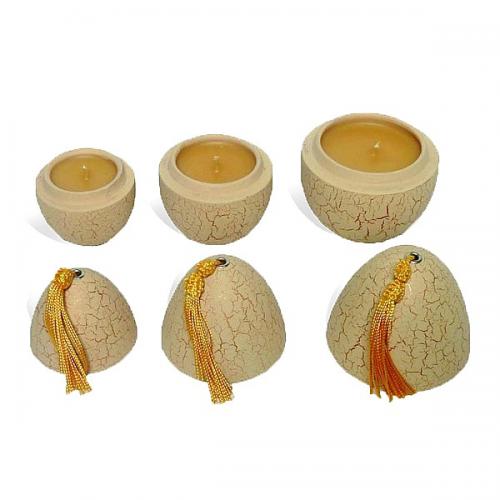 Série de trois (3) Œufs photophores parfumés en Tadelakt à l'aspect craquelé. Un effet à la fois chic et très original!
