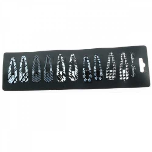Ventegros.fr vous propose des accessoires cheveux pour femme. Profitez de ce lot de 12 pinces clip imprimées fantaisies pas cher (0.46 € / Unité). Matière : métal. Couleurs assorties. Taille L : 5 cm. Pour plus d’informations, contactez notre service client au Tél : 09 74 77 14 80 ou envoyez-nous un mail sur cette adresse : contact@ventegros.fr.