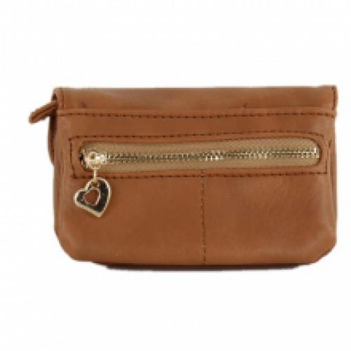 Porte-monnaie à rabat bordé de surpiqûre avec zip au dos