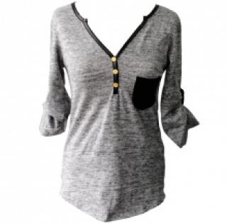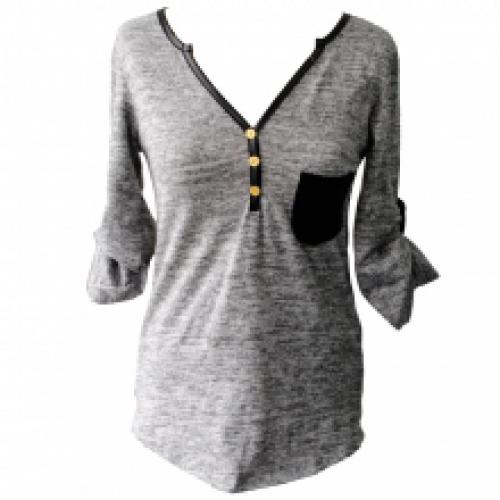 Pull chiné avec poche poitrine et manches retroussables