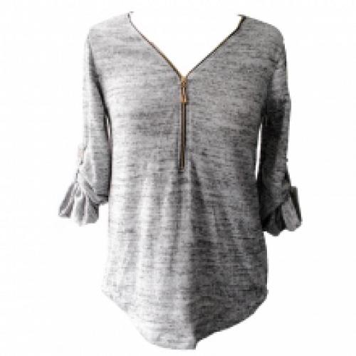 Un prix exceptionnel pour ce lot de 8 pulls chiné fabriqué majoritairement en acrylique (6.75 € / Unité). Pull doté de manches retroussables avec col V zippé et découpe arrondie à la base. Modèle disponible en couleurs assorties et en taille unique. Pour plus d’informations, contactez notre service client au Tél : 09 74 77 14 80 ou envoyez-nous un mail sur cette adresse : contact@ventegros.fr.
