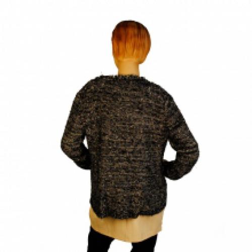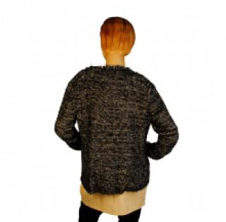 Pull chiné ouvert bordé de fausse fourrure