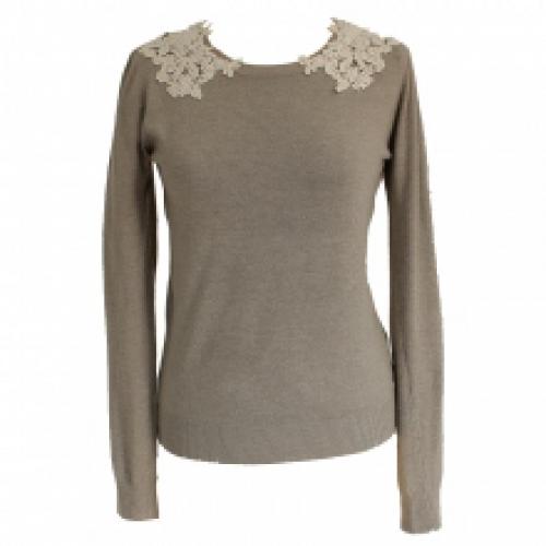 Pull décoré de dentelles sur les épaules
