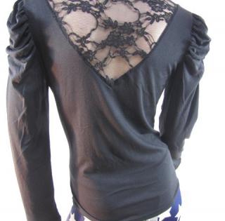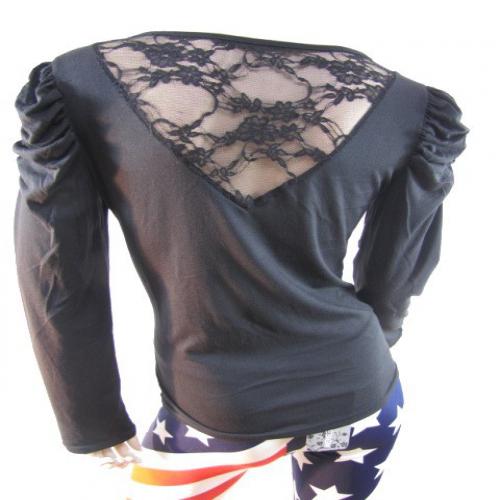 top femme chic manches longues à effet balloné avec noeud papillon et un dos nu recouvert de dentelles.