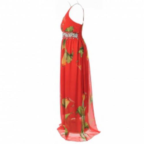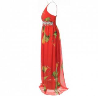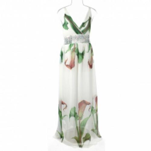 Robe longue imprimée fleurie et ornée de cristaux sur la taille