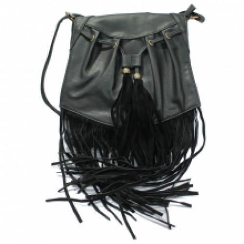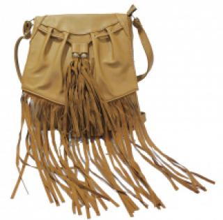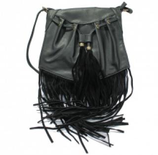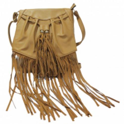 Sac à bandoulière à franges avec lien à serrer et pompons