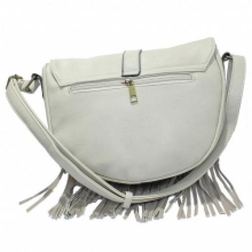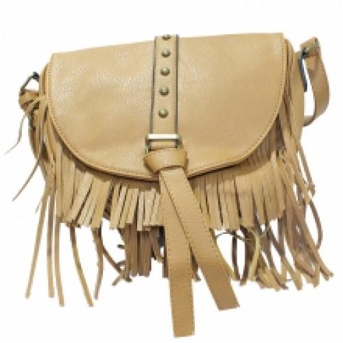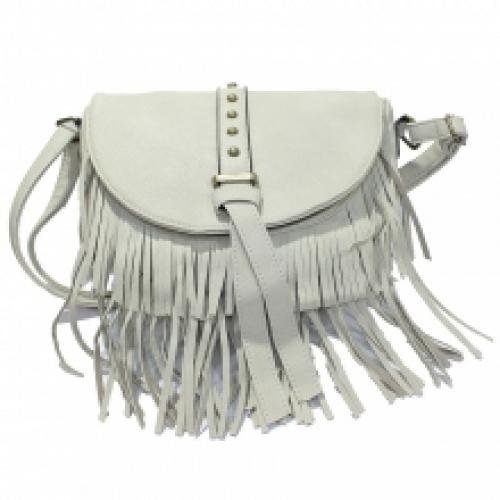 Sac à bandoulière doté d’un rabat arrondi et franges