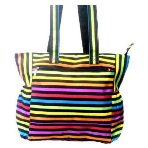 Sac à main très tendance imprimé rayures multicolores fluo pour un effet branché et fashion. Sac muni d'une poche zippée devant, de deux poches latérales avec bord élastiqué et double anses. Modèle disponible en taille et couleur unique. Livré par lot de 12 pièces à un prix imbattable (5.40 € / Unité). Pour plus d’informations, contactez notre service client au Tél : 0974771480 ou envoyez-nous un mail sur cette adresse : contact@ventegros.fr.