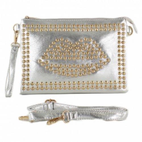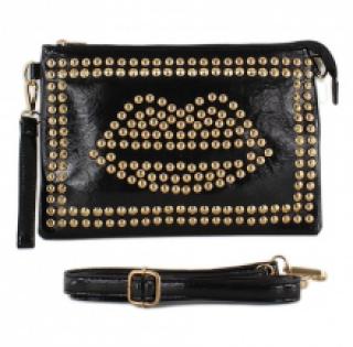 Sac à main avec motif lèvre clouté pour un look tendance, livré par lot de 5 à mini-prix (10.13 € / Unité). Équipé d'une dragonne et bandoulière amovible. Disponible en couleurs assorties : silver, rose doré, noir doré, fuchsia. Taille : unique. Pour plus d’informations, contactez notre service client au Tél : 0974771480 ou envoyez-nous un mail sur cette adresse : contact@ventegros.fr.