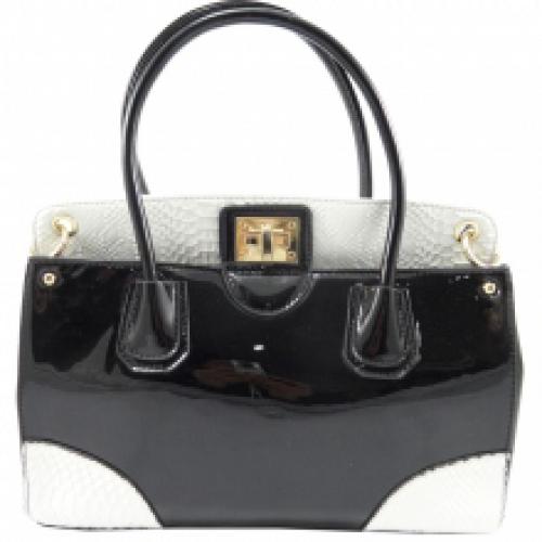 Joli sac à main verni doté d’empiècement reptile sur le dessus et les bases. Modèle équipé d’un fermoir tourniquet en métal doré devant. Le lot de 3 sacs est proposé à prix low-cost sur notre grossiste en ligne (14.85 € / Unité). Couleurs assorties : noir et blanc, noir, rouge. Matière : 100% PVC. Taille : 26 x 33 x 14 cm. Pour plus d’informations, contactez notre service client au Tél : 09 74 77 14 80 ou envoyez-nous un mail sur cette adresse : contact@ventegros.fr.