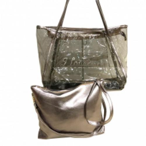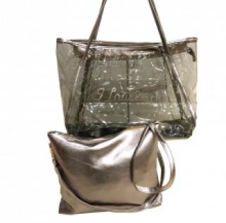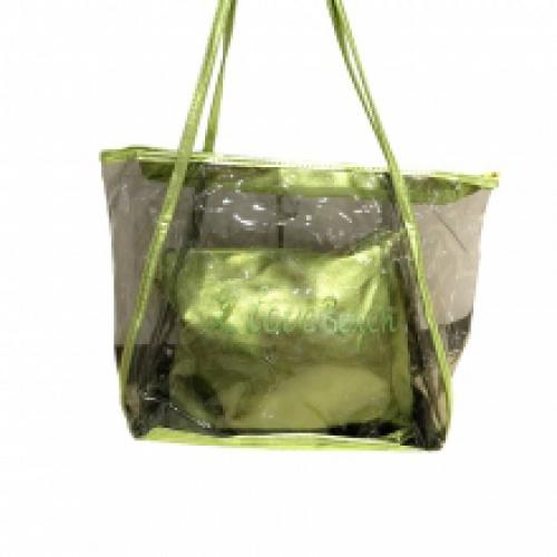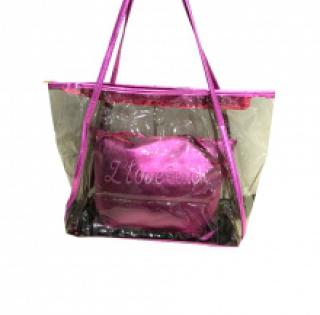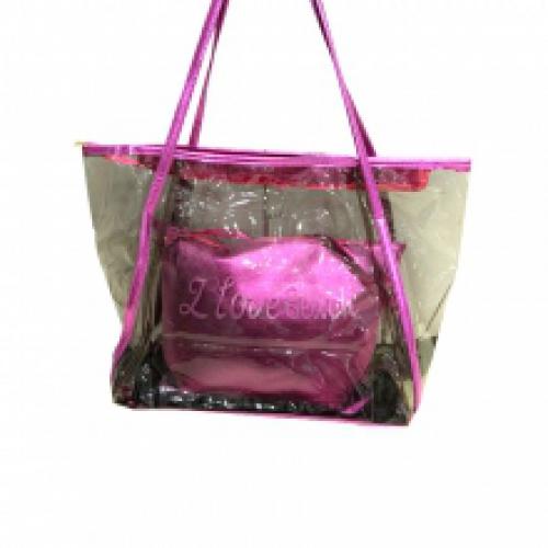 Sac de plage transparent "I love beach" avec une pochette à bandoulière assortie