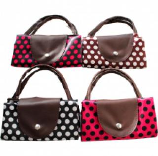 Lot de 12 sacs shopping à pois avec rabat à bouton pression, vendu à prix défiant toute concurrence sur ventegros.fr (1.75 € / Unité). Sac zippé dessus avec double anses, fabriqué entièrement en polyester. Couleurs assorties. Taille : 46*36*13. Pour plus d’informations, contactez notre service client au Tél : 09 74 77 14 80 ou envoyez-nous un mail sur cette adresse : contact@ventegros.fr.