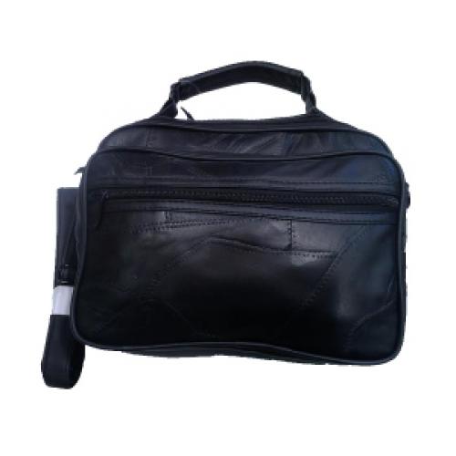 Sacoche noire en cuir avec bandoulière amovible