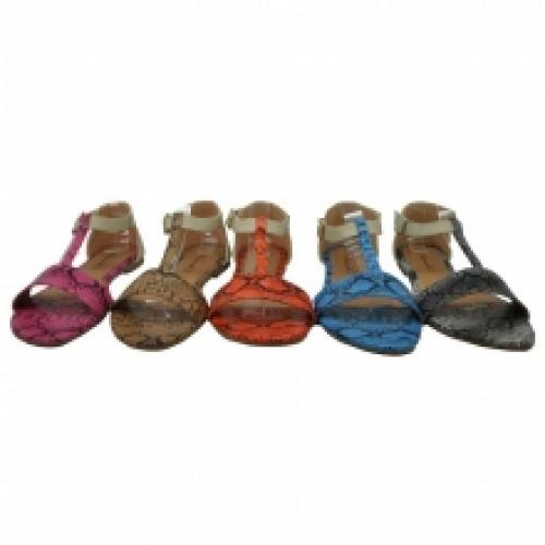 Sandales en vogue avec empiècement reptile et bride salomé, vendues par lot de 12 paires à prix compétitif (6.48 € / Unité). Modèle fabriqué en polyuréthane. Équipées d’un arrière du pied couvert et d’un fermoir par bride bouclée sur la cheville. Montées sur une semelle d’usure en gomme antidérapante. Pointures assorties : 36-41. Couleurs disponibles en orange, camel, bleu, noir et rose. Pour plus d’informations, contactez notre service client au Tél : 0974771480 ou envoyez-nous un mail sur cette adresse : contact@ventegros.fr.
