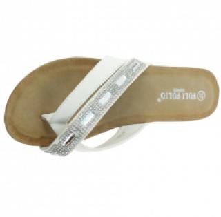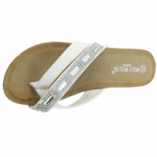 Sandales blanches avec double brides ornées de strass